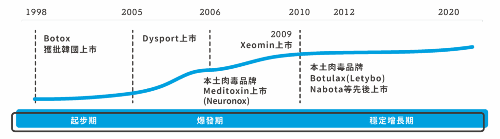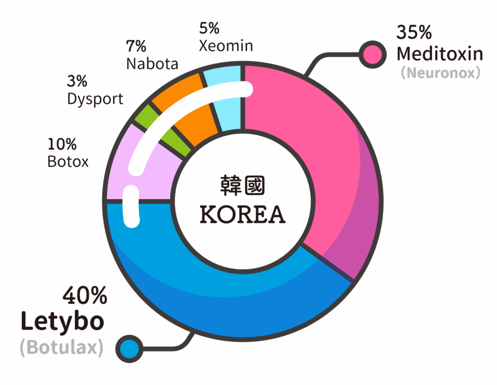 韓國影音流行文化產業強盛,隨著偶像風潮熱燒,加上獨特的民族性,更使醫美市場競爭激烈。尤其在政府刻意扶植下,也使韓國本土微整品牌日漸茁壯,每千人進行醫美療程的滲透率更是超乎歐美大國,讓微整成了名符其實的全民運動,也讓韓國自有的肉毒桿菌產品紛紛加入戰局。
