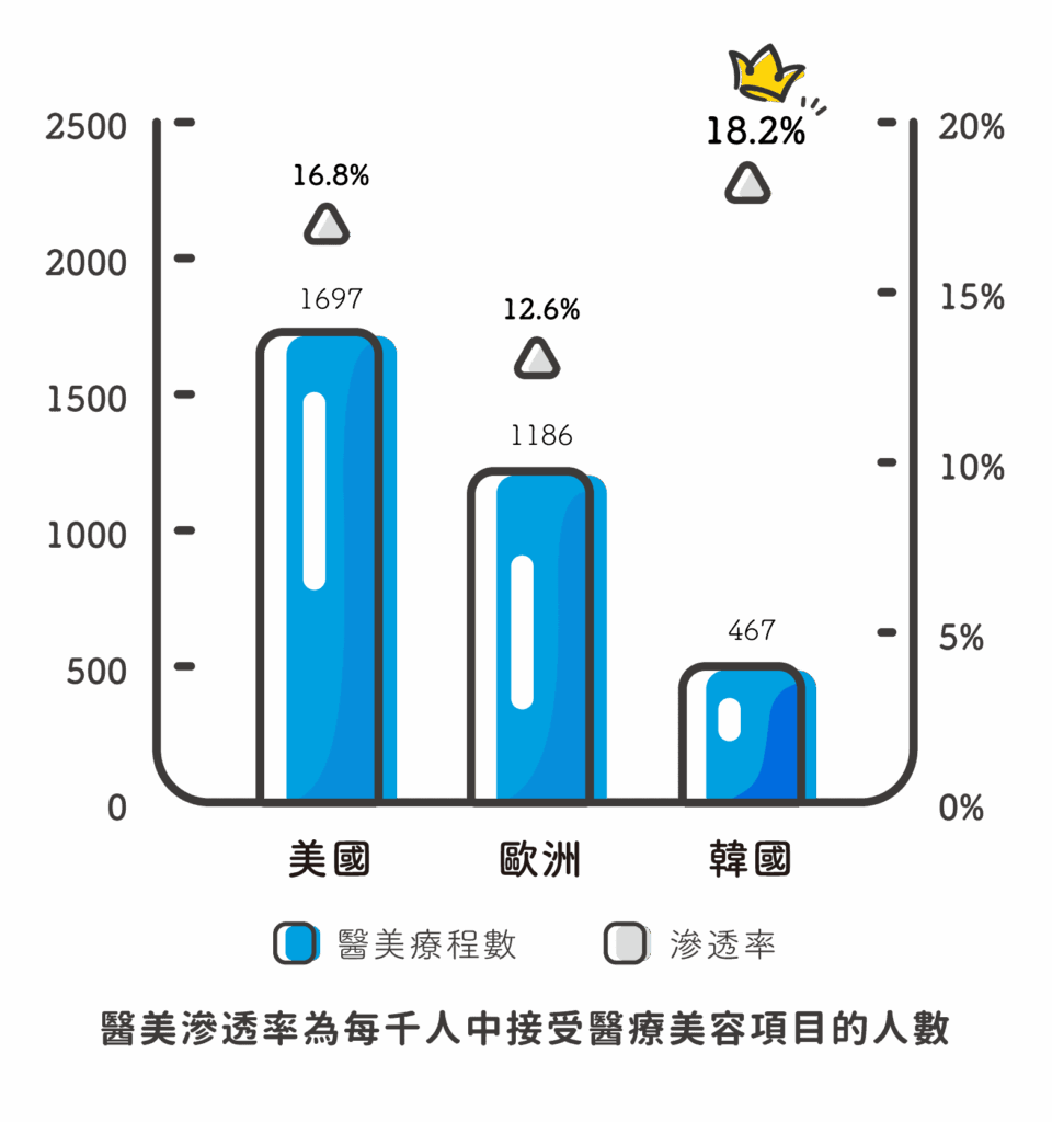 根據韓國The Korea Times 2019年統計數據顯示,韓國20-35歲的年輕女性是醫美主力軍,其中被譽為醫美入門款的肉毒桿菌素療程更是熱門,光是肉毒素市場規模就高達35億台幣,約1/3的年輕韓國女性注射過肉毒產品,男性消費者的比例也節節升高。
