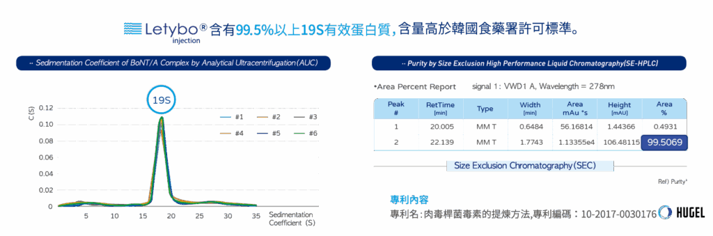 肉毒桿菌的製造需經過「發酵、純化、安定、混合」4步驟,Letybo保提拉肉毒採取Hugel製藥公司專利提純法,產製的900kD蛋白純度達到99.5%,不但含量高於韓國食藥署標準,多項臨床研究及期刊論文也證實其安全、效果跟持久度都不亞於歐美品牌。