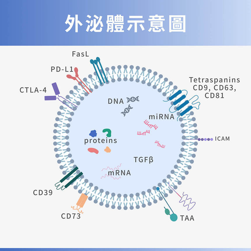 外泌體(Exosome)是一種由細胞在正常生理活動中釋放的奈米級囊泡,屬於細胞外囊泡的一類,體積約為30到150奈米,具有穩定的脂質雙層結構,內部可攜帶蛋白質、脂質以及多種核酸分子,成分會隨來源細胞的不同而有所差異。