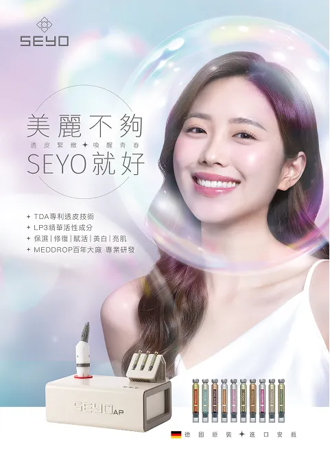 TDA專利無針透皮技術 保濕 | 淡化細紋 | 延緩衰老 | 賦活 | 修復 | 減退暗瘡 德國貴族指定保養非入侵式保養高速輸送營養及精華,持續保濕。修護肌膚10分鐘內快速搞定做完一次相當於敷100片面膜 德國SEYO水光儀是一台造型時尚、體積輕巧、操作時間短的美容儀器,利用專利TDA技術,能將保養精華液霧化到極小微分子,並利用高壓高速的方式將精華液深層滲透進肌膚;非侵入性保養,有別於傳統水光針,德國SEYO水光儀為非醫療美容器材,美容師亦可操作使用。 德國SEYO水光儀不僅可用於日常肌膚養護,搭配德國進口安瓶、專業美容保養、美髮、美甲等均可輕鬆駕馭,操作簡單易於使用,是一台跨場所、跨營業類別、多功能、多用途的跨時代美容儀器。 德國 SEYO 技術背景 德國SEYO水光儀源自於:歐洲最大的應用科學研究機構之一,成立於1949年3月26日的弗勞恩霍夫應用研究促進協會,以德國科學家、發明家和企業家約瑟夫弗勞恩霍夫(Joseph von Fraunhofer)名字命名。 德國SEYO水光儀作用原理 TDA專利無針透皮技術 首創無創水光系統,透過TDA無針透皮技術在養護過程中不直接接觸肌膚,卻能有針對性地噴射把含水分子的透明質酸、礦物質、肌膚所需之營養快速滲透至肌膚,促使霧化的精華液能快速均勻的覆蓋整個肌膚,喚起肌膚的青春活力。 TDA精華(含活性LP3)在手握把中形成極小分子。 水光儀將混合LP3的微分子以高速直接穿透表皮,精確地滋潤肌膚。 水光儀將混合LP3的微分子以高速直接穿透表皮,精確地滋潤肌膚。 幾次療程後所導入的營養素形成肌膚的滋養泉源。 TDA無針透皮技術 獨家滲透技術 —— LP3-Komplex(LP3 複合技術)治療過程中,LP3 透過純氧激活,使表皮層的層狀結構開啟約 65%,從而讓活性成分順利進入更深層的肌膚。無創無痛:無針頭、不破壞角質層,避免疼痛與紅腫,無需恢復期。 高效滲透:透過高壓氣流驅動,活性成分可滲透至3.5mm 深度,與皮秒雷射或微針電波搭配、效果更好。 均勻導入:精華液微分子可均勻進入肌膚,提升保濕、修護、抗氧化等功效。 長效作用:活性成分可存留於肌膚內,持續發揮護膚效果。 SEYO 水光儀來自德國 DERMADROP,採用全球首創的 TDA 無針透皮技術(Transdermal Application)。 該技術透過高壓氣流,將活性精華液中的微分子導入肌膚深層,達到無創、高效的養膚效果。與傳統注射式水光針不同,TDA 技術無需針頭,不會破壞皮膚屏障,卻能讓精華液深入肌膚層,提供長效滋養與修護。 TDA滲透度 精華液可均勻滲透到肌膚深層 普通滲透度 幾乎全部精華液,都留在肌膚表層幾乎沒有精華液的肌膚細胞 TDA德國原廠進口精華液 THE KEY TO BETTER SKIN 含專利LP3成分 HYAL N10 深度保濕 /成熟肌針對初老肌膚深層保濕,緊緻毛孔。 HYAL N5 高度保濕 /年輕肌富含玻尿酸與保濕成分,改善肌膚代謝。 POLAR 淨白亮肌 /暗黃肌改善肌膚色素代謝和暗黃。 MITOCELL 深層抗皺 /熟齡肌淡化細紋、緊緻肌膚。 PRODERM 抗痘抗敏 /痘痘肌含有天然蜂膠調理肌膚,深入滋潤肌膚。 DERMACOOL 急救舒緩 /泛紅肌改善與舒緩局部肌膚問題。 FABULOUS 女性私密 /私密處敏感部位護理,改善彈性、緊緻度。 NAILCURE 指甲護理 /美甲滋養保濕使指甲煥發光澤、保持水嫩。 MATRIX-A 抗敏感 /抗敏肌水潤保濕,改善肌膚環境。 SHINE & GLOW 頭皮養護 /養護髮頭髮頭皮護理,改善頭皮屑和髮質。