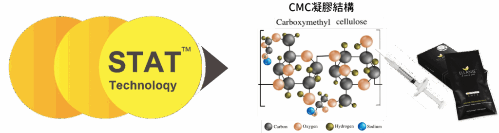CMC凝膠體的絕佳黏度及支撐性,注入肌膚後可立即性地達到肌膚凹陷及皺紋的填補功能。