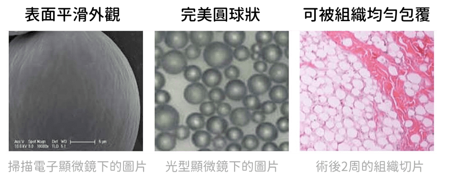 洢蓮絲內含的 PCL(polycaprolactone)晶球是一種聚己內酯粒子,表面為平滑正圓型的微米球體,也是經 FDA 認證的安全聚合物。