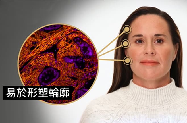 Ellansé 洢蓮絲的 PCL 晶球能夠持續刺激纖維細胞增生,讓新生的膠原蛋白搭起強化肌膚的彈性支架,長時間維持飽滿彈性及膨潤度,同時增添平順光澤感,使肌膚豐盈又緊緻。
