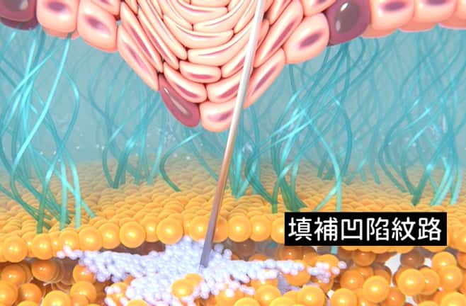 將洢蓮絲注射至目標層次,達到初步填充支撐的效果 |