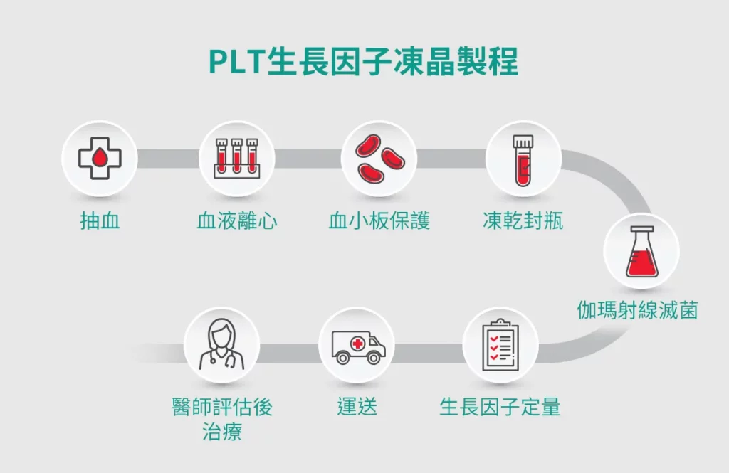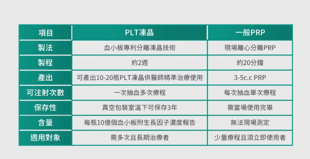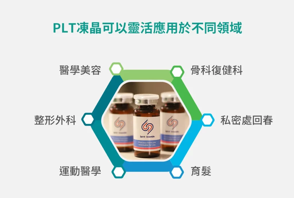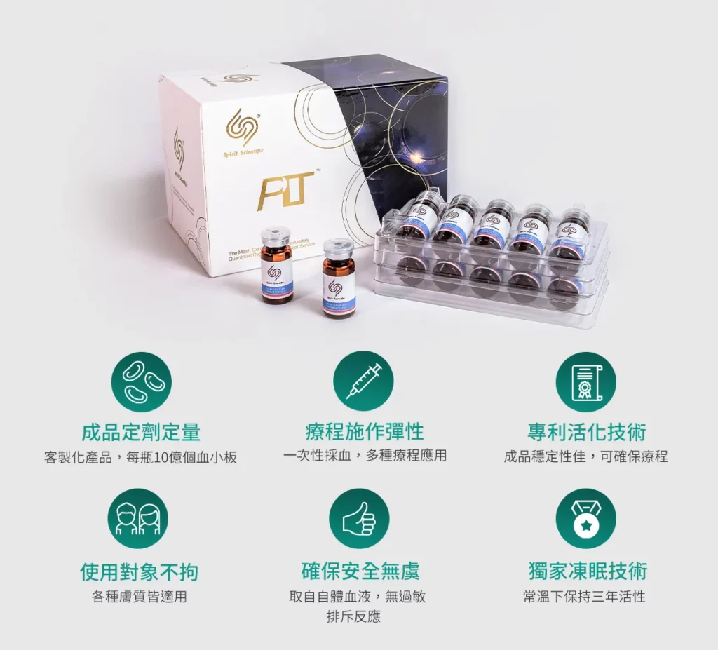 PLT凍晶是什麼? 血小板的英文為 platelet,PLT 凍晶是血小板精製技術,稱為 Platelet-Lyophilized Treatment,簡稱 PLT,PLT 凍晶須在無塵無菌室中,透過專利製程技術萃取出高濃度純粹血小板再用低溫真空的方式,將血小板結晶於真空封瓶內,經過γ放射線滅菌後再即時架儲測試,以確認 PLT 凍晶每瓶安瓶中分裝有 10 億個血小板。每批生產之PLT凍晶皆以酵素免疫分析試劑(ELISA)測定活性濃度,以消除自體血小板因個體差異與當下生理狀況而產生的生長因子差異,具高度穩定性,可於室溫下存放三年。 思必瑞特(Spirit Scientific)生技團隊研發PLT凍晶修護,以專利技術完整規劃PLT凍晶修護服務流程。這一技術突破了傳統PRP的限制,對於皮膚再生和傷口癒合扮演了關鍵角色。該技術不僅保持血液的最佳活性,還能在室溫下將產品保存長達三年。PLT凍晶修護能讓醫師更精準處理過去治療相對有限的疾病或問題,也由於產品取於自身,不會有過敏問題,與其他療程做複合式結合更能幫助提升術後成果。能提供給璞之妍的醫師與有需求的使用者,更有效、快速、舒適的治療選項。 人體血液可以分為血漿與血球兩部分。血漿佔總血量的大約55%,而血細胞則佔約45%。血漿略呈淡黃色,其成分中約90%是水,7~8%是血漿蛋白,其餘為養分、廢物或氣體等。血球可分為紅血球、白血球和血小板等,其中血小板具血液凝固功能最廣為人知。主要功用是促進血液凝固,幫助人體止血。當血管受損時,血小板迅速被激活,聚集於傷口處,因而在細胞修復過程中扮演著關鍵角色。除了參與止血過程,血小板還會釋放大量生長因子,這些因子刺激組織細胞,提高細胞的存活率,並促進膠原蛋白的形成,從而加速傷口的癒合過程。 血小板可產生多種生長因子,其中以鑑別出超過30餘種,這些生長因子更是人體中修復受損組織的重要角色,其中以血小板萃取生長因子(PDGF)、變形生長因子(TGP-α、β)、表皮生長因子(EGF)、纖維母細胞生長因子(FGF)、血管內皮生長因子(VEGF)、角質細胞生長因子(KGF)等被研究及運用得最廣泛。 PLT凍晶 優點 成品定劑定量:每瓶PLT凍晶均精心製作,含有10億個血小板,確保每位使用者獲得專屬的療程體驗。・療程施作彈性:簡便易行的一次性採血程序,為使用者提供多種療程應用的彈性選擇,滿足不同需求。・專利活化技術:專利活化技術確保成品的穩定性,為每次療程提供可靠的效果。・使用對象不拘:PLT凍晶的卓越性能使其適用於各種膚質,不論屬於敏感肌、乾燥肌、油性肌,都能擁有優質的效果。・確保安全無虞:取用自體血液,確保 PLT凍晶的安全性,也降低了過敏排斥反應的風險。・獨家凍眠技術:透過獨特的凍眠技術,在常溫下可保持長達三年的活性,確保產品品質長效穩定。 PLT與PRP比較 PLT生長因子凍晶技術的主要優點在於,它能精確控制純化分離過程中獲得的血小板含量,在每個安瓶中均勻分配10億個血小板。血小板經充分冷凍乾燥去除水分,真空封瓶與經過γ射線滅菌後,確認該PLT凍經製程下之血小板凍晶具高度穩定性與保有活性,可於室溫下存放三年。如此,患者於PLT凍晶效期內,任何時間皆可於診間直接進行自體血小板治療,極大地提升了治療的便利性。 一般採集血液標本後,會將採血袋送入無塵室,以低溫離心機,在確保血小板活性下,同時對血液進行離心處理以實現分層。離心分層的結果是從上到下依次為血小板血漿、高濃度血小板血漿和紅血球。專業工程師會於生物安全操作櫃中仔細取出高濃度血小板血漿,進而製作成血小板凍晶。 PLT凍晶適用對象及其治療範圍 治療前注意事項: 請於採撿前三天,做好自我健康管理:1.避免熬夜飲酒2.避免油膩飲食3.抽血前勿空腹4.避免劇烈運動 採血需注意者: 1.空腹者2.生理期間3.血液傳染疾病者4.體重過輕者5.高/低血壓患者6.長期服用抗凝血藥物者7.懷孕中或產後(含流產)六個月以內者